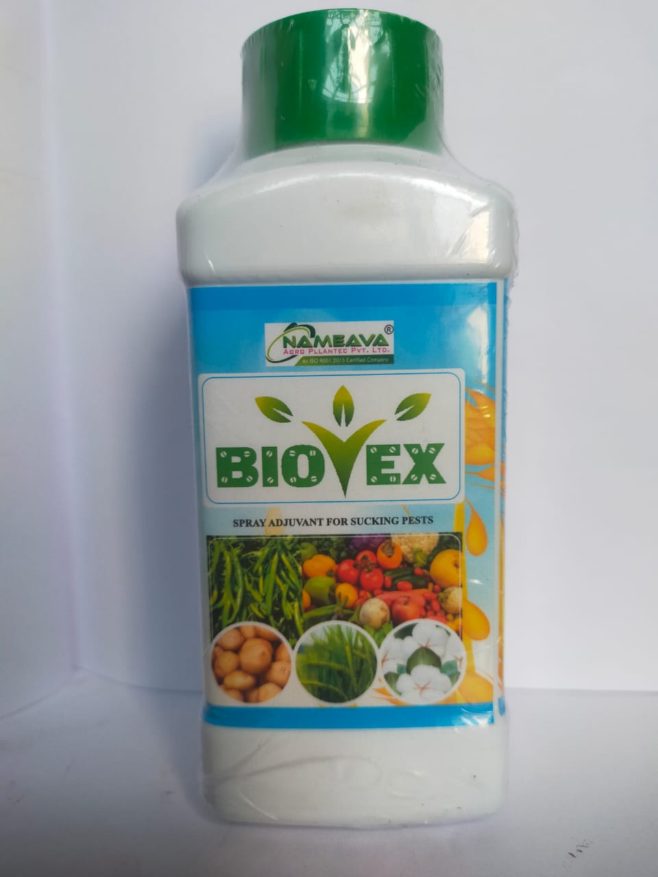 BIOVEX is an advanced spray adjuvant specially formulated to enhance the effectiveness of pesticide sprays against sucking pests such as aphids, jassids, thrips, and whiteflies. It ensures better coverage, wetting, and penetration of pesticides on crop surfaces, improving pest control performance and overall crop health. Developed with modern agro-technology, BIOVEX helps reduce spray losses, increases pesticide absorption, and enhances the uniform spreading of spray droplets, resulting in better protection and higher yield.